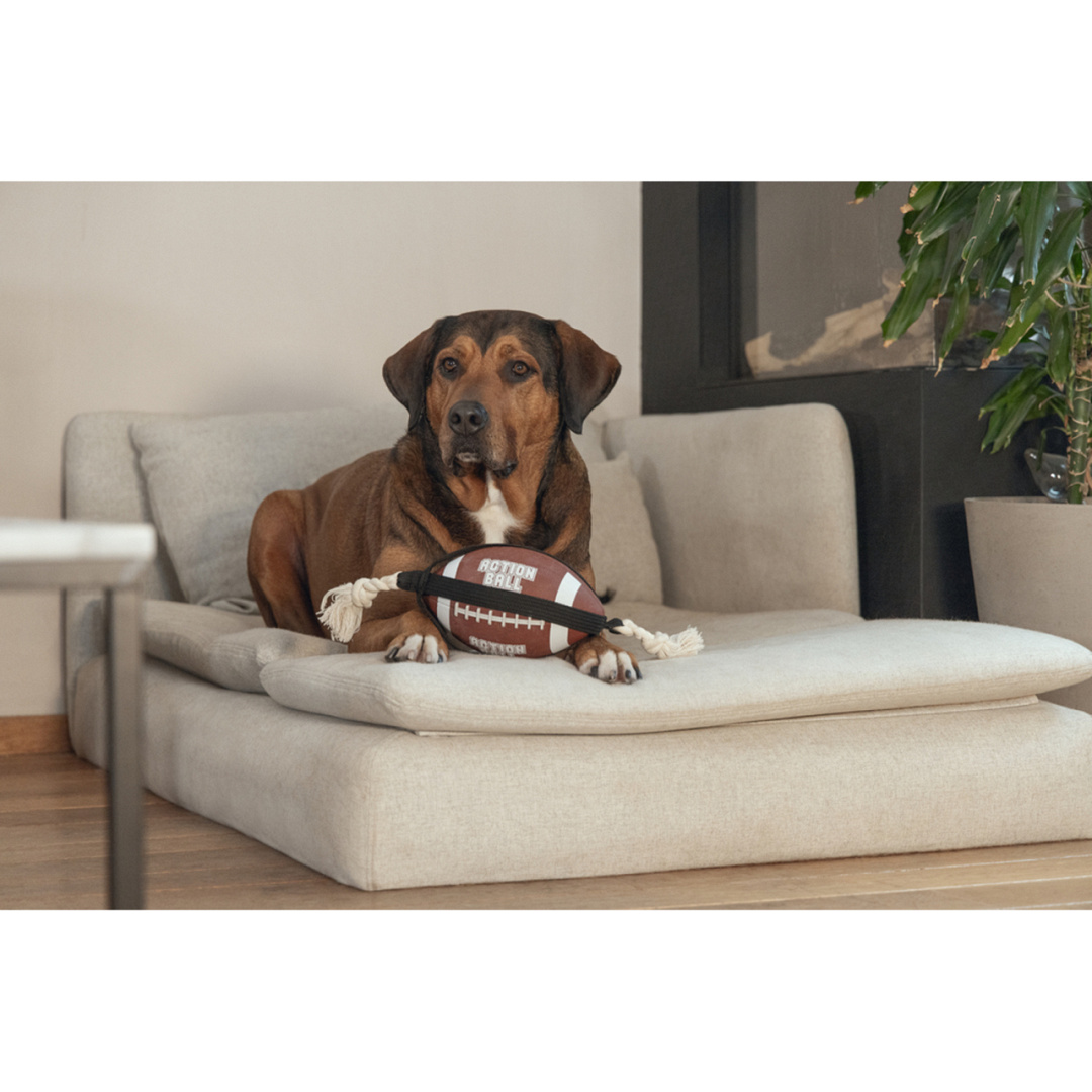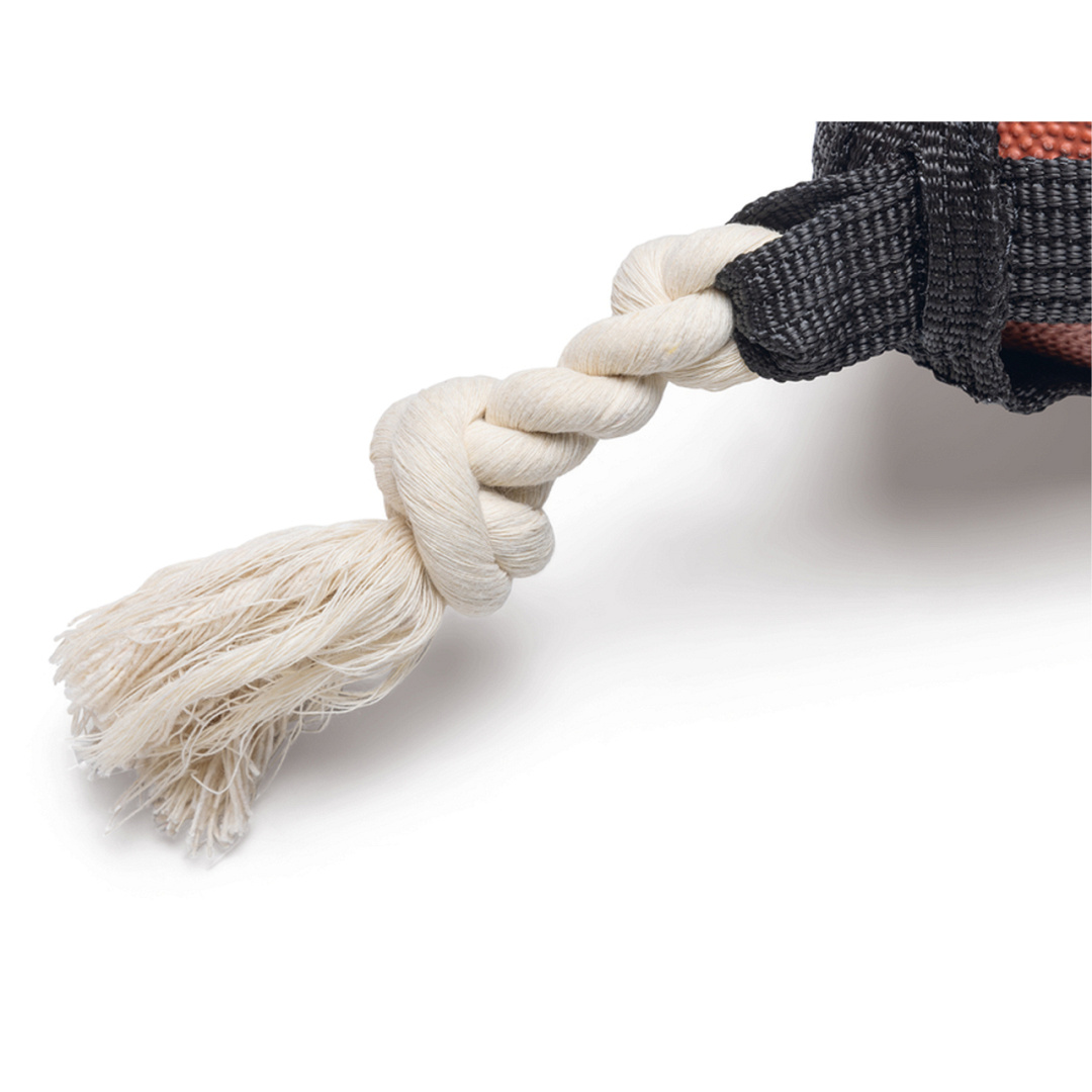 Rugbybal met flostouw, voor de leukste apporteer- en trekspelletjes.