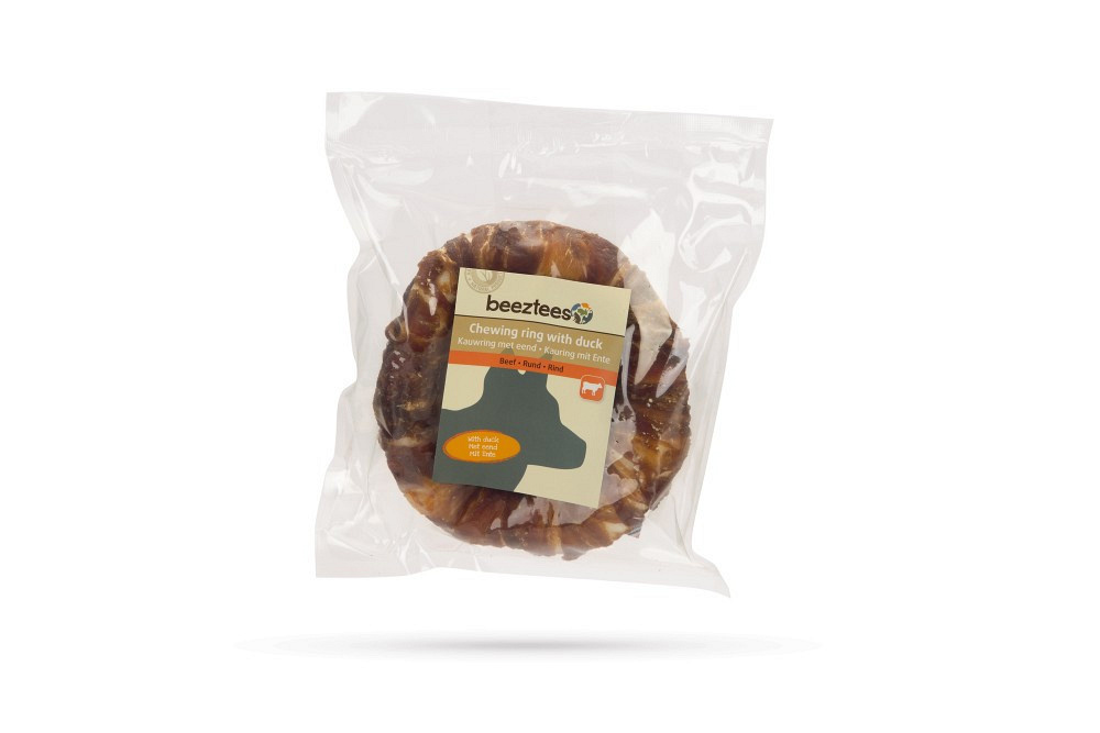 Lekkere kauwsnack in de vorm van een ring, met rund en eend.