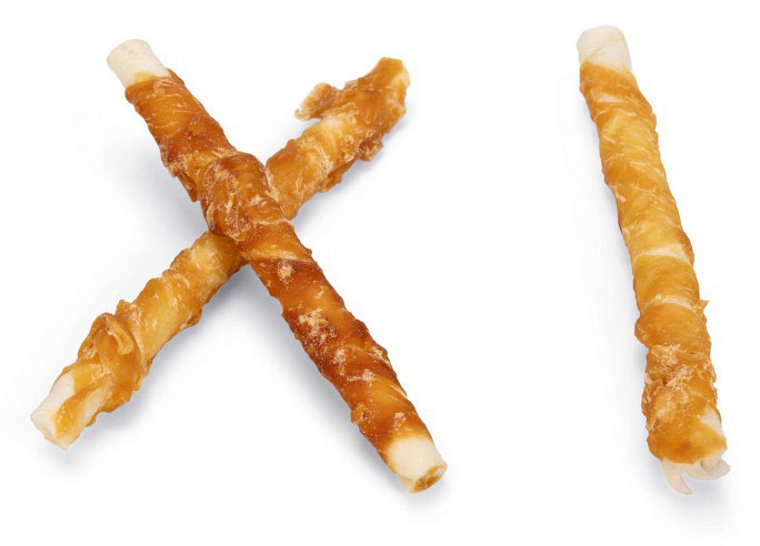 Heerlijke kauwstaafjes gemaakt van runderhuid en omwikkeld met kip.