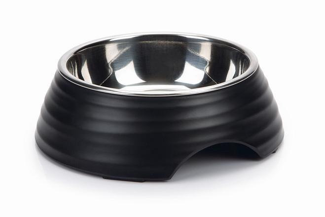 Moderne voerbak van melamine en een vaatwasbestendig RVS bakje.