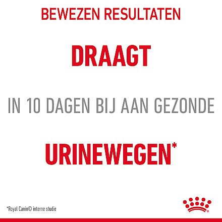Royal Canin Urinary Care verlaagt de kans op het ontstaan van urinekristallen bij gezonde katten. Als je kat al problemen heeft met de urinewegen, overleg dan eerst met de dierenarts. Zorg sowieso altijd voor voldoende vers drinkwater. Dan plast je kat eventueel ontstane kristallen weer uit.